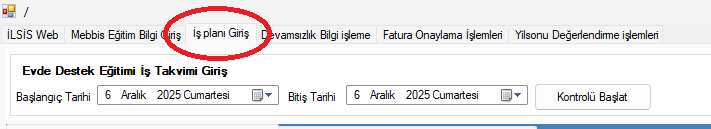 Evde Destek Eğitimi alan öğrencilerin İş Takvimi Giriş için Mebbis giriş ekranına Gerekli Güncelleme eklenmiştir.